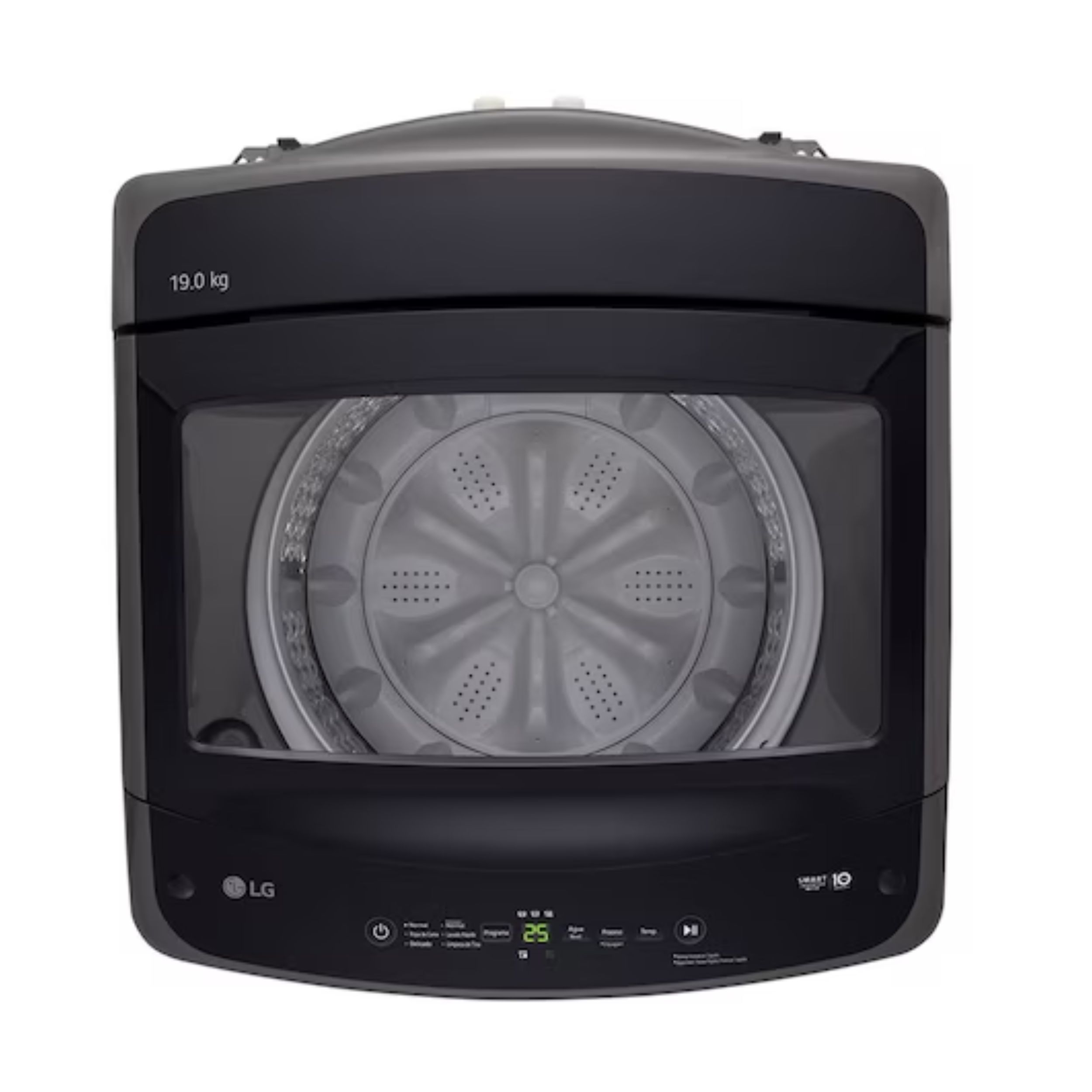 * Marca: LG * Modelo: WT19BVTB * Potencia (w): 200 * Panel digital: Sí * Eficiencia energética: A * Tipo de carga: Superior * Programas de lavado: 8 * Niveles de agua: 10 * Lavado rápido: Sí * Inverter: Smart Inverter * Filtro pelusas: Sí * Control de temperatura: Sí * Limpieza de tinas: Sí * Ancho (cm): 63.2 * Alto (cm): 102 * Largo (cm): 67